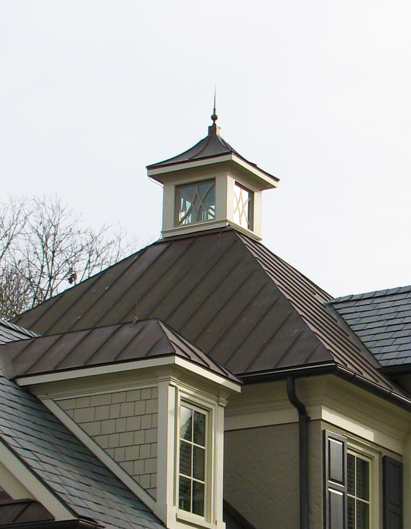 Cupolas can be totally covered in metal, or have only its roof portion covered by metal, slate etc. Most cupolas will feature a finial.